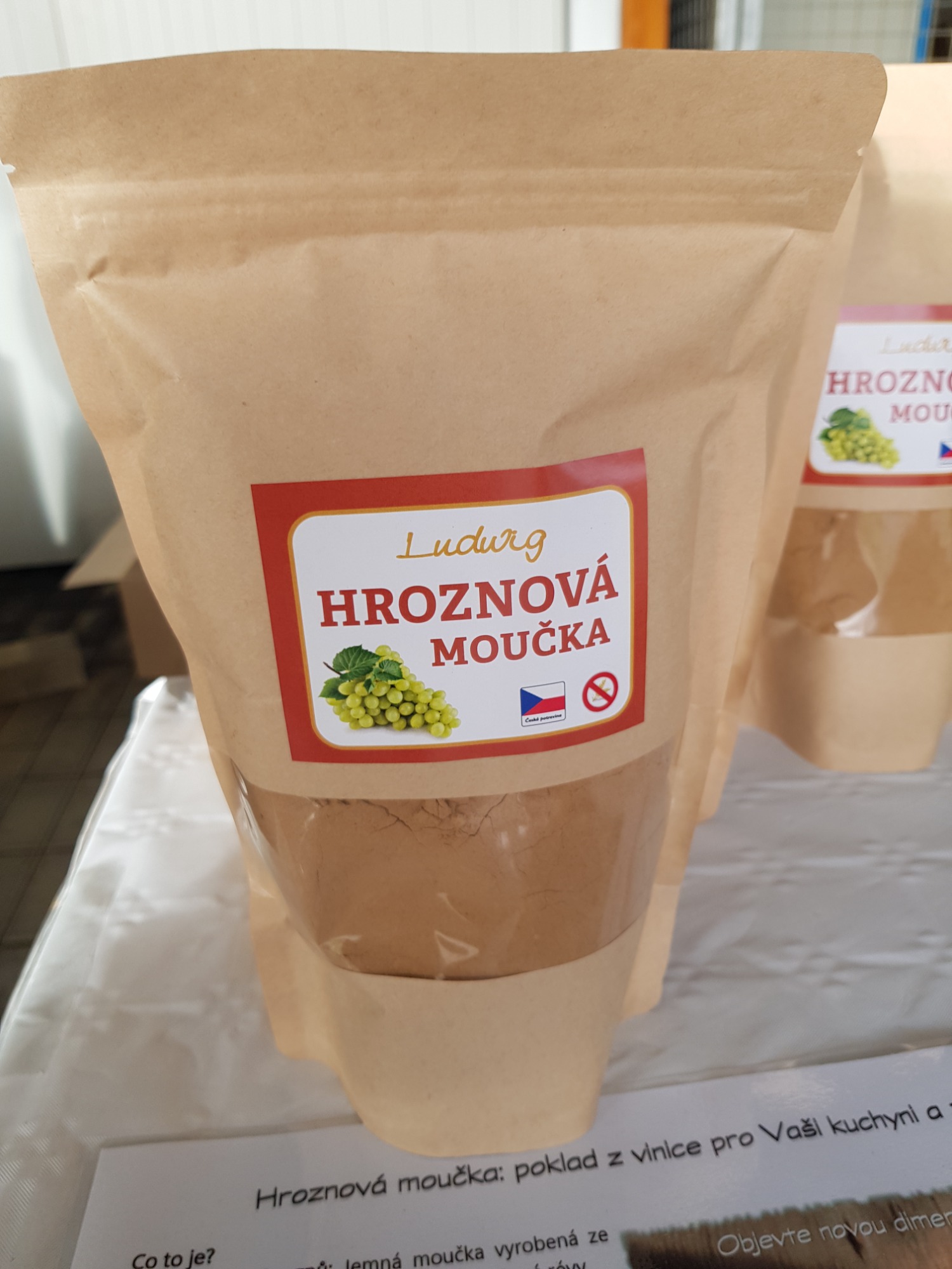 Hroznová moučka je unikátní, liší se od „mouky z hroznů“ dostupné na trhu. Tato mouka, nesprávně označená jako hroznová, je vyráběna z pokrutin, což jsou výlisky, zbytky hroznových semínek po vylisování oleje. Naše mouka je jen ze slupek a z dužiny. Rozdíl je především v senzorice velký. Pokrutinová mouka chutná, jako když rozkousnete semínko z hroznu, má hodně tříslovin. Zatímco hroznová moučka je lehounce nasládlá, s kyselinkou a voňavá, připomíná hrozen. A ta vůně hroznu se odrazí ve finálním výrobku.